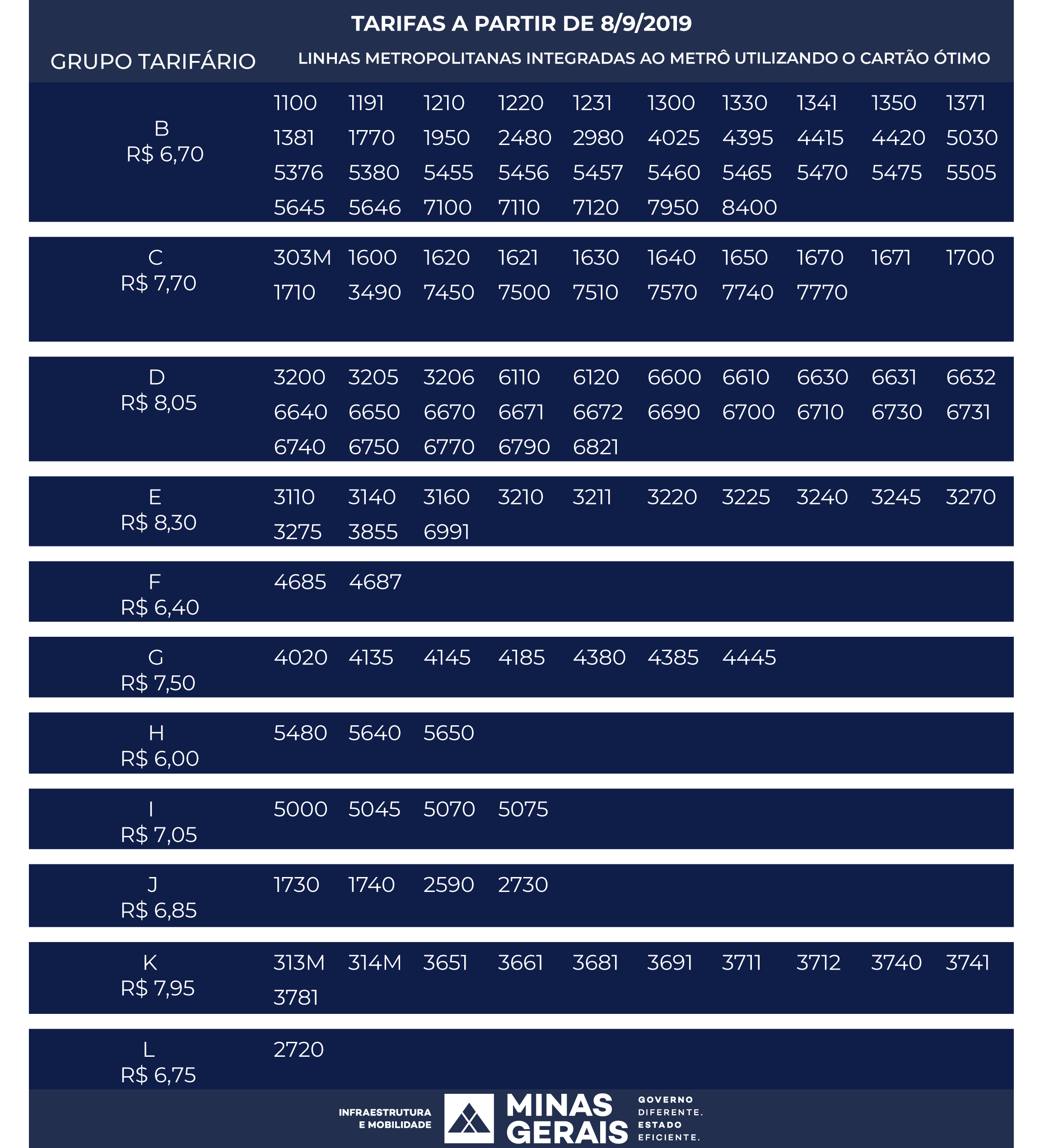 No próximo domingo (8/9), a Companhia Brasileira de Trens Urbanos (CBTU) vai implementar mais uma etapa do reequilíbrio tarifário unitário do metrô de Belo Horizonte. Por este motivo, a Secretaria de Estado de Infraestrutura e Mobilidade (Seinfra) informa que as tarifas de integração das linhas do Sistema de Transporte Metropolitano, exclusivamente utilizando o Cartão Ótimo, serão acrescidas de R$0,40.